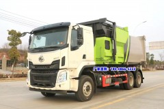 柳汽乘龍H5后雙橋鉤臂垃圾車底盤配置:采用乘龍H51S豪華駕駛室,玉柴YCS06270-60(270馬力)國六發(fā)動(dòng)機(jī), 法士特9JS119T-B變速箱,軸距4500