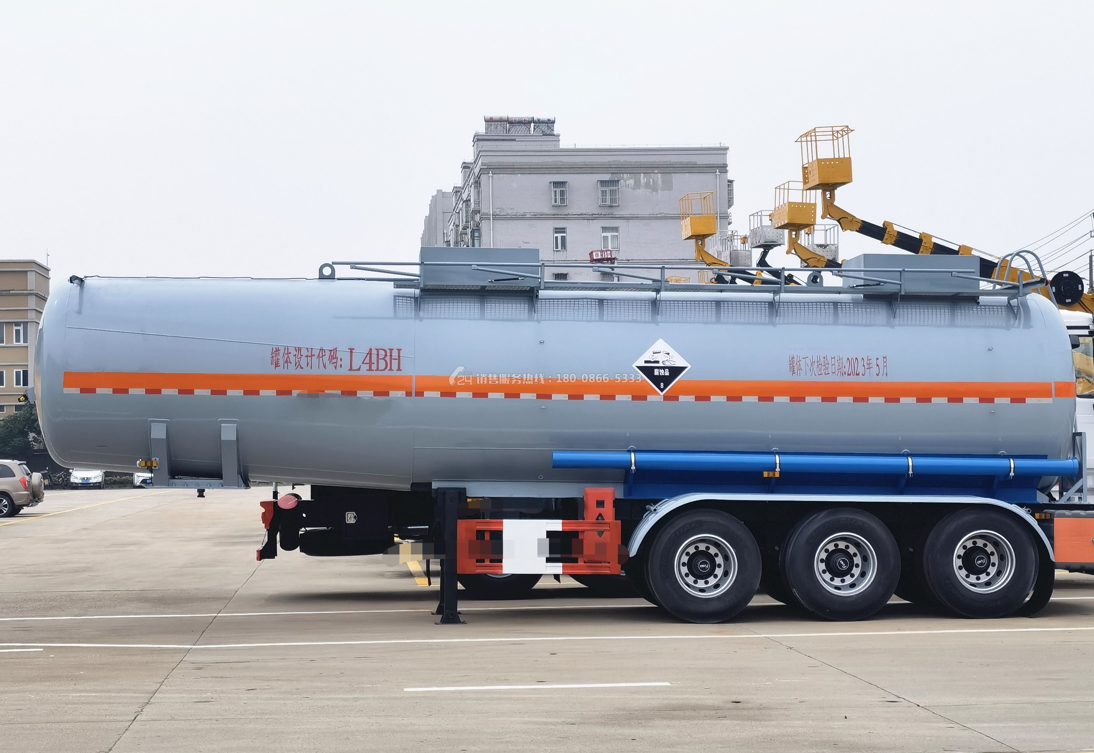 罐體采用國標優(yōu)質(zhì)Q235碳鋼板制作罐體以及封頭,罐體截面為正圓罐,罐體尺寸嚴格按照公告尺寸制作29.0立方,內(nèi)襯聚乙烯平均12-16mm厚。罐頂單圍板,兩側(cè)帶碳鋼活動護欄.罐頂圍板內(nèi)2只全塑罐蓋,2個塑料呼吸閥,罐頂圍板內(nèi)做瀝青漆防腐,罐頂落水管引至后封頭出.罐體通倉,內(nèi)帶鋼襯塑雙隔板結(jié)構(gòu)防浪隔板.罐體底部一個DN100氣動四氟蝶閥總控帶緊急切斷開關(guān)后保險杠控制,通過襯塑三通管道,后尾部左右自流各一個DN80 PP球閥帶PP出口,出口帶塑料保護箱.罐體兩側(cè)為PVC炮筒,2根卸料管,2只8KG滅火器.