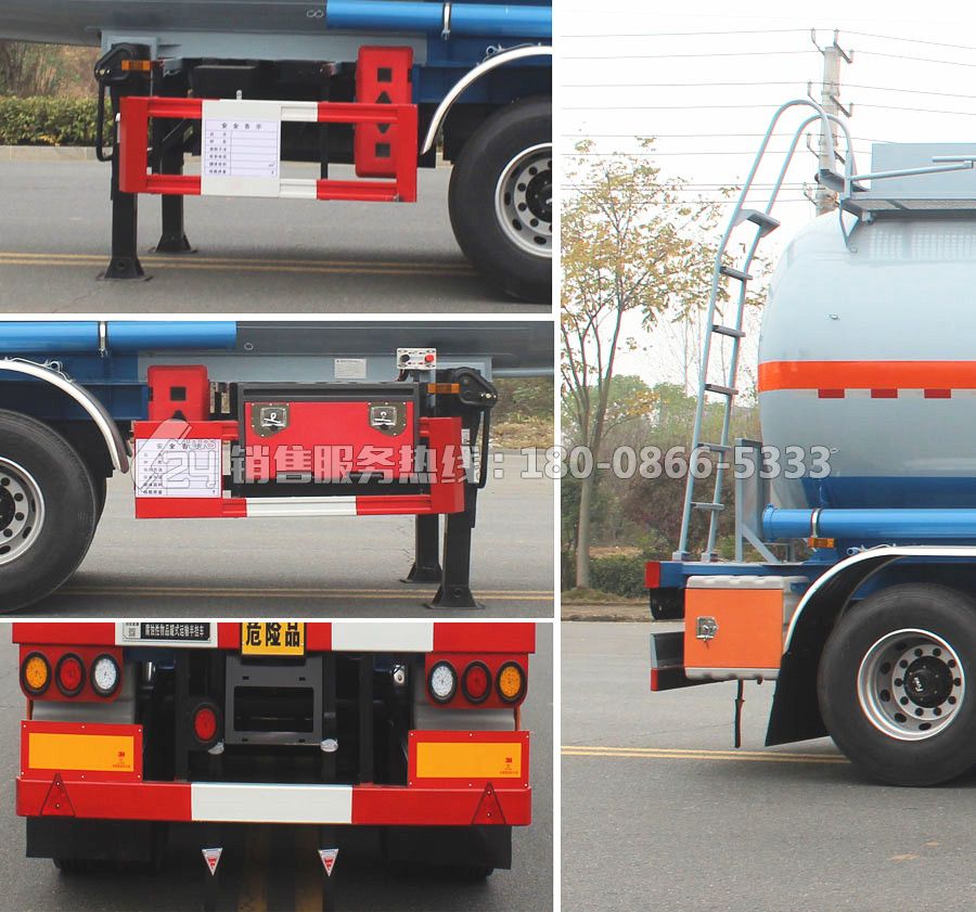 3軸10T 富華車橋帶自動調(diào)整臂,兩軸ABS,防飛濺塑料擋泥板,12條12R22.25 12PR真空胎及鋼圈,90#牽引銷,28T聯(lián)動支腿,1個工具箱,1個水箱。一個備胎架。加裝制動襯片報警裝置,氣壓制動系統(tǒng)安裝空氣干燥、油水分離裝置。