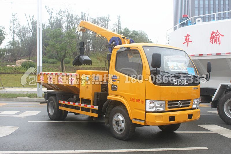 4.挖取深度大:吊臂360度旋轉(zhuǎn)角度,抓斗最大深度12米,抓斗工作范圍0.7--1.2米,容積0.075立方米;100-300升水箱 ,車廂容積3-4立方,可加高墻板及液壓密封蓋。