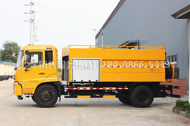 清洗部分:清洗罐采用5mm武鋼碳鋼制作,容積10.0方,帶視水管,安裝通潔/雙耀/品孚250L高壓清洗泵,壓力為20Mpa,流量:250L/min,帶100米清洗軟管,卷管力為1800N,膠管內(nèi)徑25mm,卷管速度0-25m/min,推進(jìn)力度大于180N。