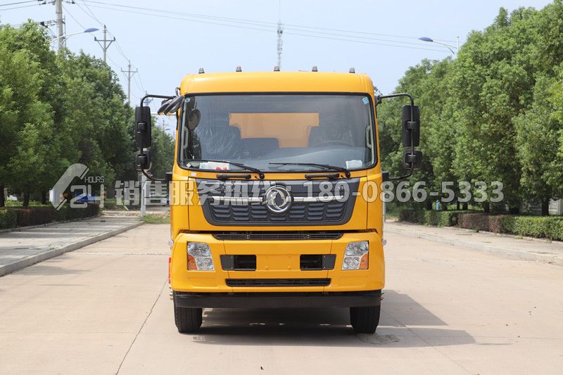 采用東風(fēng)天錦底盤,康明斯210馬力國六發(fā)動機(jī),東風(fēng)6檔變速箱,軸距4700mm,9.0噸后橋,10.00R20原廠鋼絲胎,原廠ABS,帶方向助力,離合助力器,氣剎制動。
