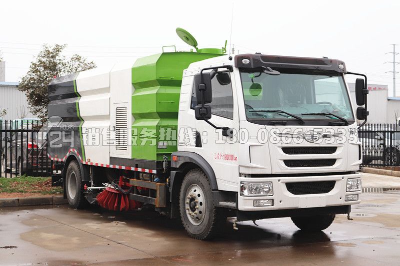 2、性能優(yōu)良:其洗掃作業(yè)采用高壓力、低流量的射流水沖洗,并結(jié)合洗刷刷洗路面,實現(xiàn)了強力去污、高效節(jié)水;其高壓噴桿采用新型的V型布置結(jié)構(gòu),中噴桿和兩側(cè)噴桿及側(cè)洗刷同時對路面、路緣、路緣石進行高壓清洗和刷洗,V型布置的噴桿結(jié)構(gòu)使清洗后的污水自動流向中部的吸嘴內(nèi)被吸入污水箱。被清洗后的路面、路緣、路緣石,可達到無垃圾、無灰塵、無污漬、無污水的效果,大大提高了城市道路的清潔質(zhì)量。