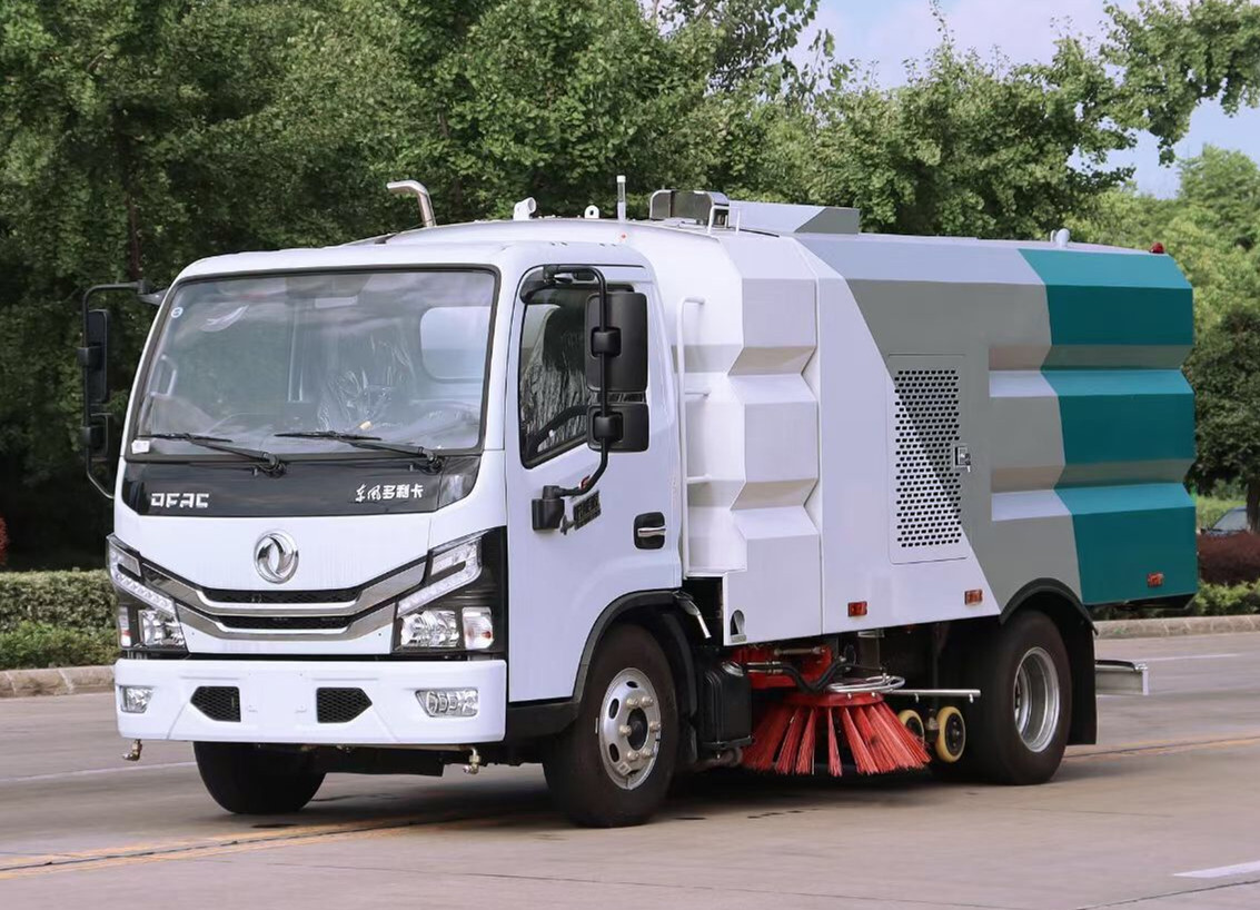底盤通過加裝副發(fā)動機(jī)、風(fēng)機(jī)、高壓水泵、清水箱、垃圾箱、左右立掃、帶噴水桿的寬吸嘴、低壓沖洗系統(tǒng)、掃盤降塵系統(tǒng)、液壓系統(tǒng)、專用裝置電控系統(tǒng)和副車架等改裝而成。