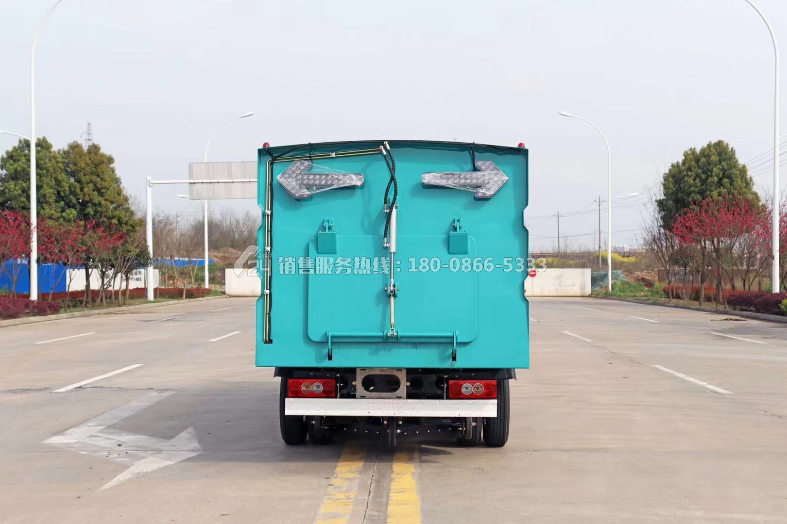 6、福田2噸小型掃路車尾部配備LED箭頭燈,工作時可有效警示過往行人及車輛。