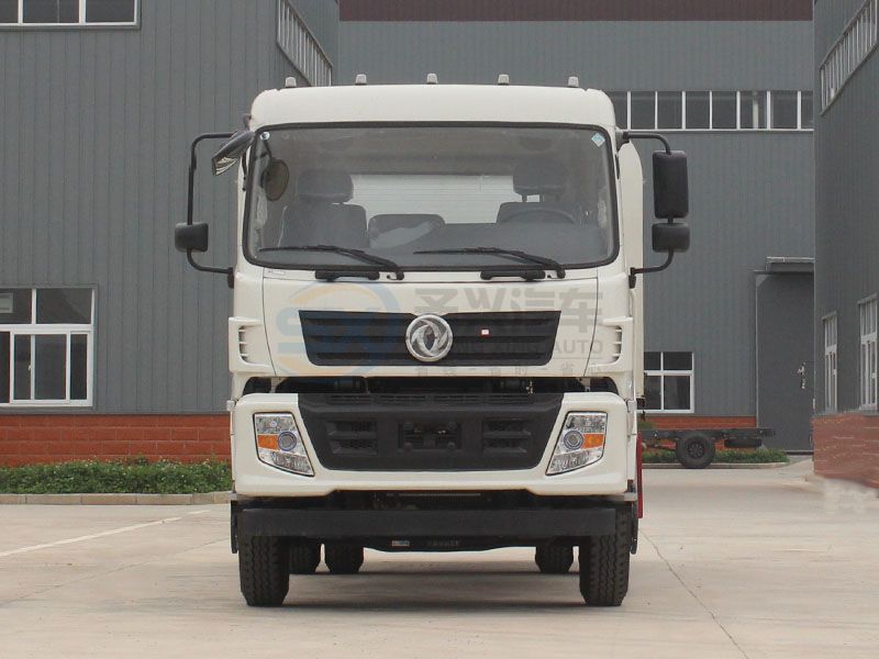 該車(chē)采用東風(fēng)商用底盤(pán),4500軸距,康明斯170馬力,8檔變速箱,前橋3.6噸,后橋9噸,9.00-20輪胎、帶空調(diào)、原廠ABS、