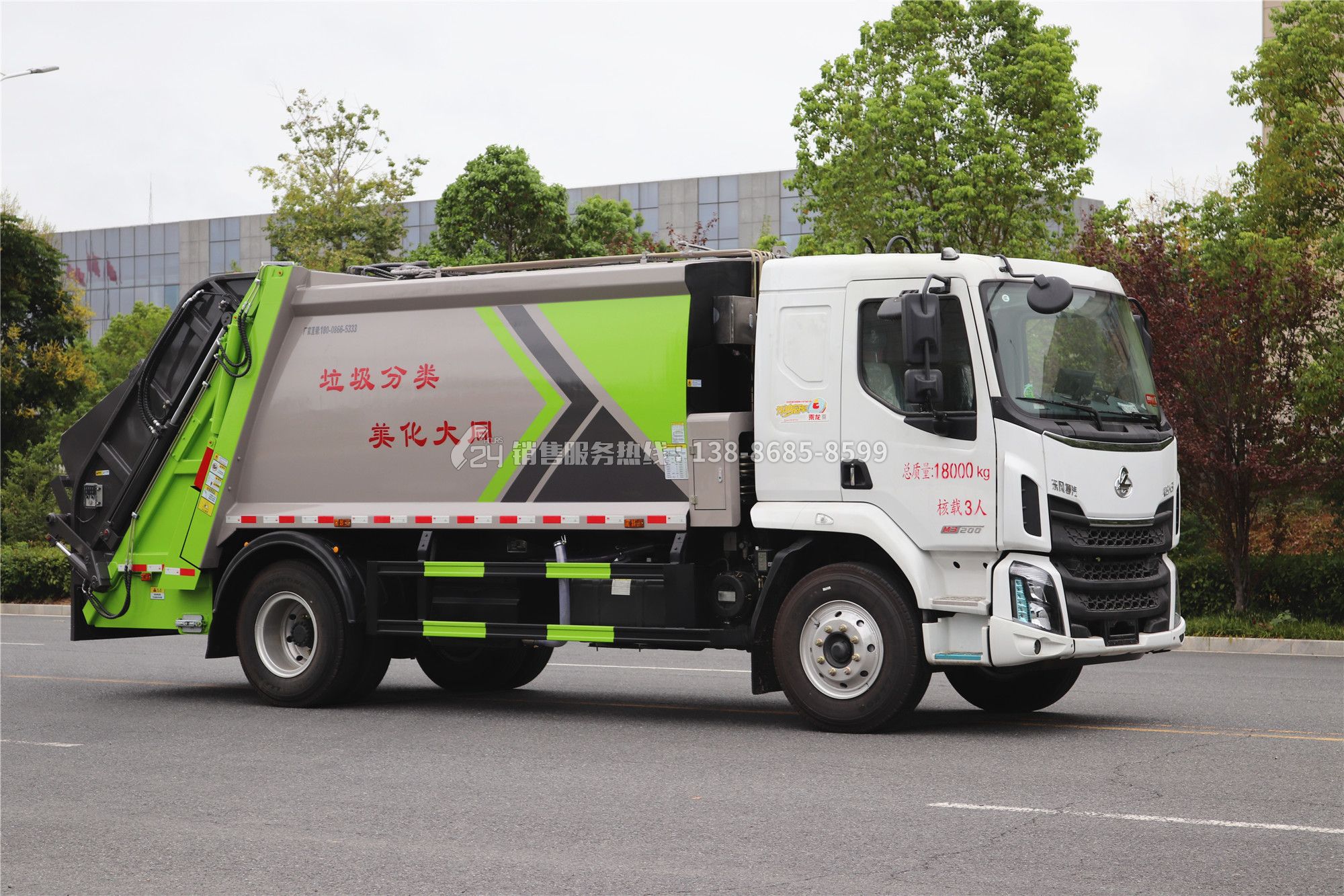 國六柳汽M3壓縮垃圾車底盤配置: 國六柳汽M3壓縮垃圾車,采用M3駕駛室,廣西玉柴YCS06 245-60國六245馬力發(fā)動機(選裝200馬力發(fā)動機),法士特8JS95E-C(帶法蘭取力器),Φ395離合,5T前橋,153后橋/5.143,板簧11/12+9,264(6+4)車架,160L鐵油箱,10.00R20,機械全浮駕駛室懸置、手動液壓翻轉(zhuǎn)、機械減振司機座椅、電動玻璃升降、遙控中控鎖、空調(diào)、ABS.
