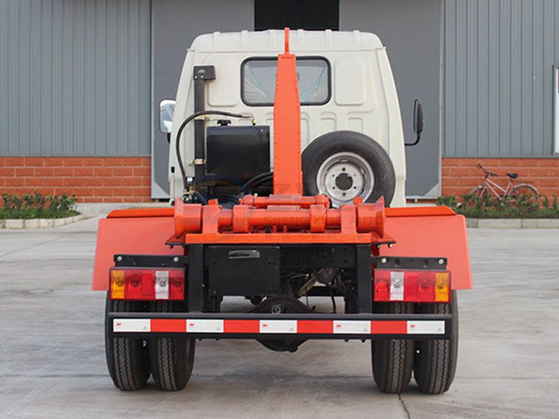 1.鉤臂式垃圾車同時(shí)具備貨物自卸和箱體自動(dòng)裝卸(即整裝整卸)兩種功能。