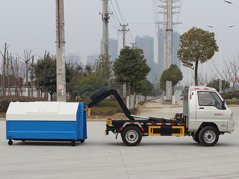 1.鉤臂式垃圾車同時具備貨物自卸和箱體自動裝卸(即整裝整卸)兩種功能。