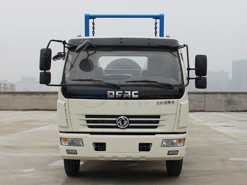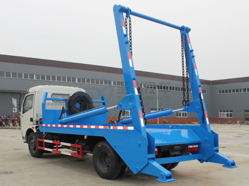 4.擺臂式垃圾車的料斗分密封、敞開(kāi)兩種。先將垃圾裝進(jìn)料斗,后上吊鏈,然后操控?cái)[臂吊料斗上車。