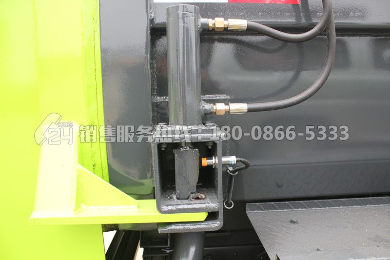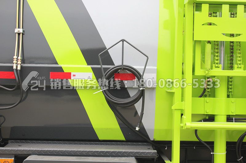 4、單油缸雙鏈條式提升機(jī)構(gòu),可掛240L標(biāo)準(zhǔn)塑料垃圾桶,進(jìn)料口密封蓋屬于液壓開(kāi)啟。