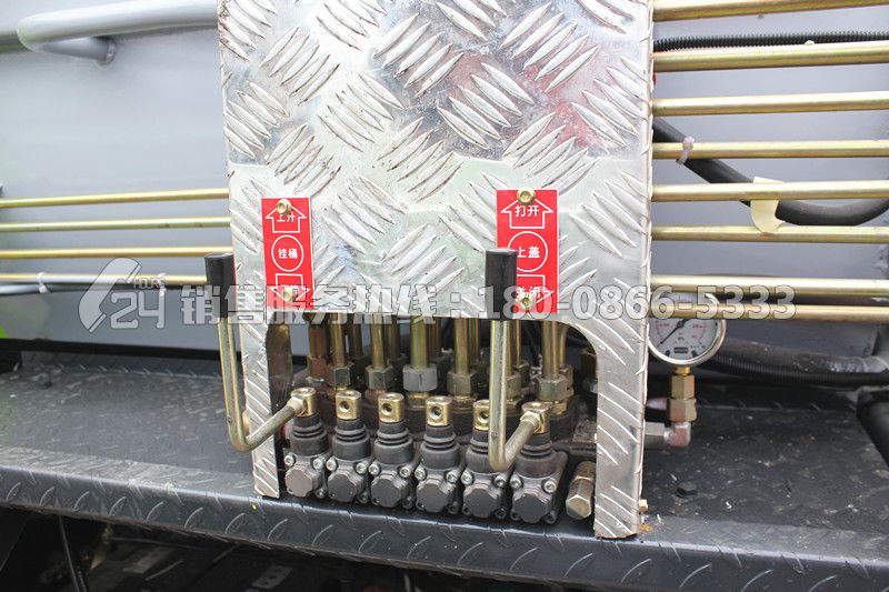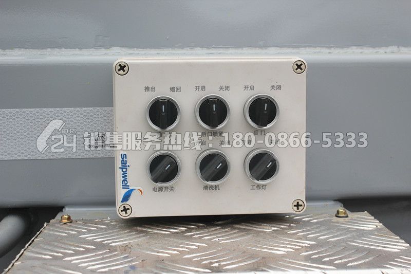 5、駕駛室內(nèi)集中電控(提升機(jī)外部手動(dòng)控制),后門鎖緊與后蓋開(kāi)關(guān)的操作具有防誤操作。