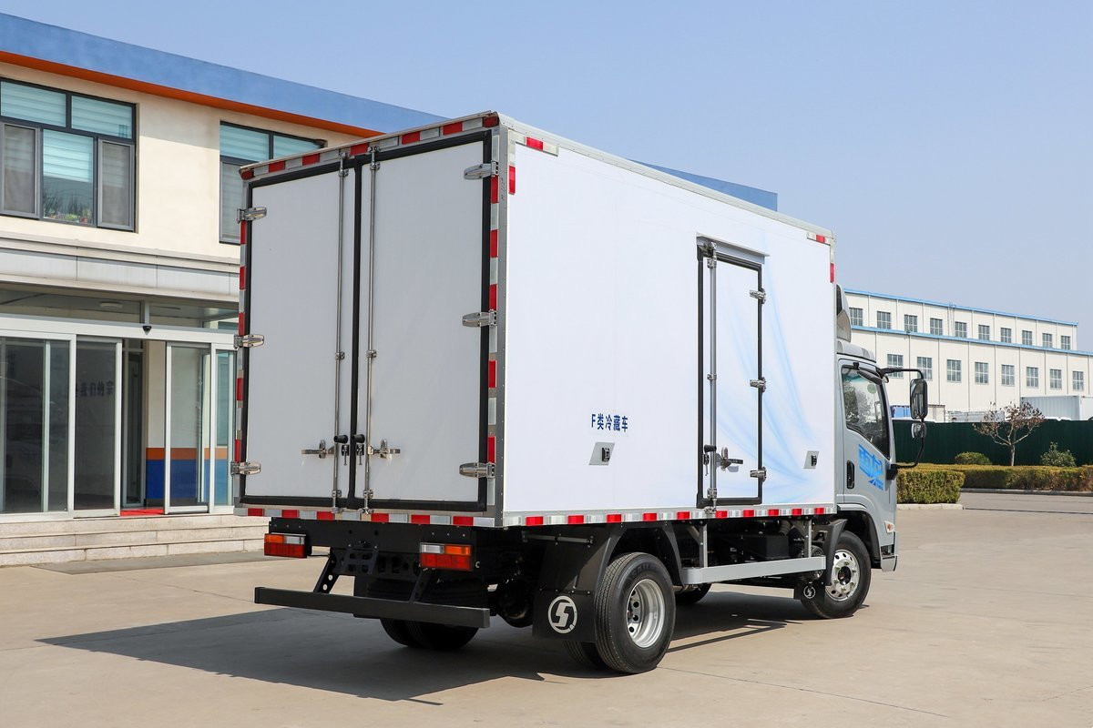 選裝配置 | 底板加裝通風(fēng)槽,龍骨架加固,頂部鋁合金導(dǎo)軌,不銹鋼肉鉤,廂內(nèi)貨架,保溫門簾等 |