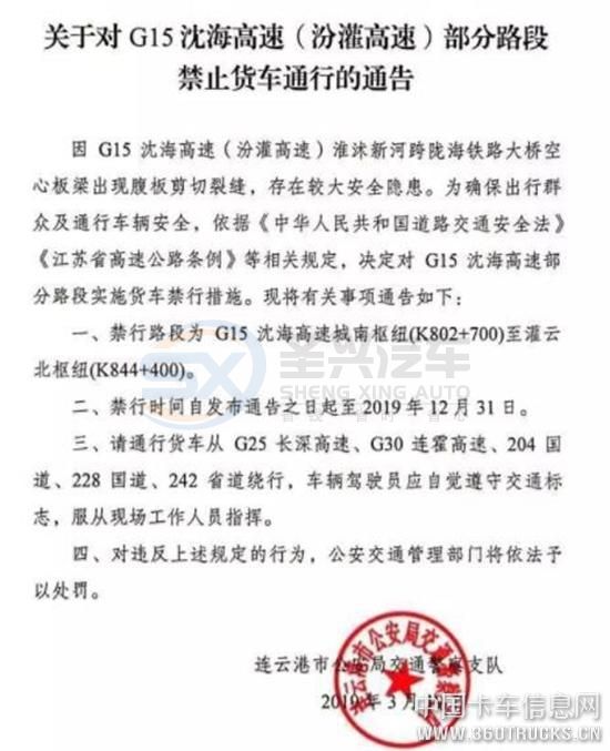 根據(jù)施工養(yǎng)護(hù)及安全需要,G15沈海高速部分路段實(shí)施貨車禁行措施。