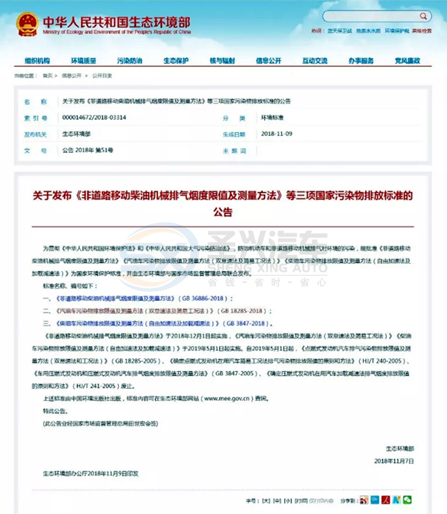 為減少汽車尾氣排放,2018年11月,生態(tài)環(huán)境部2018年第51號(hào)公告發(fā)布了《汽油車污染物排放限值及測(cè)量方法(雙怠速法及簡(jiǎn)易工況法)》《柴油車污染物排放限值及測(cè)量方法(自由加速法及加載減速法)》兩個(gè)在用汽車排放檢驗(yàn)標(biāo)準(zhǔn),并于2019年5月1日起實(shí)施。