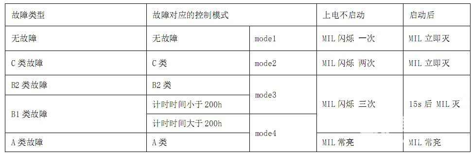 正常情況,上電不啟動,儀表自檢時間大約30s,當(dāng)發(fā)動機(jī)無故障時,會周期性閃爍一次,啟動后立即熄滅;如果閃爍兩次,則有C類故障,啟動后立即熄滅;如果閃爍三次,則有B類故障,啟動后15s,OBD燈熄滅;如果OBD燈常亮,則提示有A類故障,啟動后OBD燈一直常亮。當(dāng)提示有A、B、C類故障時,請盡快聯(lián)系服務(wù)站處理。