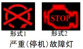 該燈點(diǎn)亮?xí)r,表示發(fā)動(dòng)機(jī)有嚴(yán)重故障,建議安全停車后,立即停機(jī)維修。
