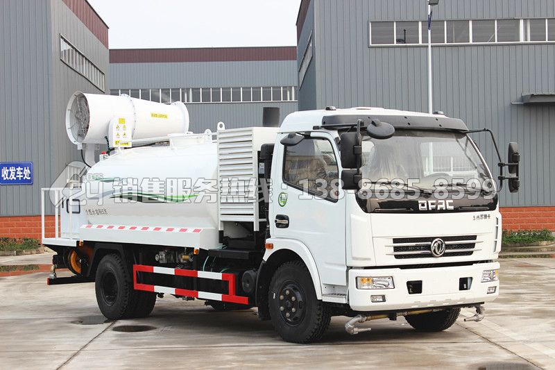 我們從上方抑塵車圖片看出,在底盤下方有前沖功能,在后置平臺(tái)有后灑功能和綠化高炮功能,兩輪子中間有側(cè)噴功能,這樣抑塵車就具有了灑水車的全部功能,前沖,后灑,側(cè)噴,綠化高炮,但是真的只有這些功能嗎?不是還有一項(xiàng)噴霧降塵功能,霧炮機(jī)組,這是抑塵車的核心功能。