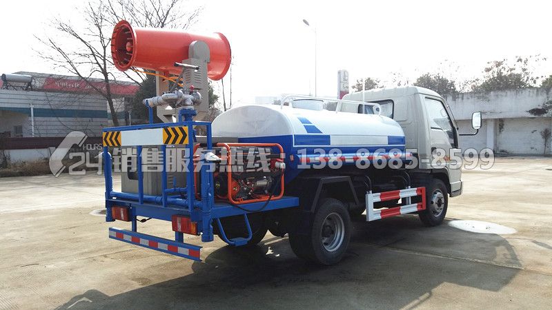風(fēng)機(jī)安裝可360°調(diào)整的直流噴嘴兩只,沖洗寬度可達(dá)到25米以上,調(diào)整角度后,還可對(duì)道路面旁的高大樹(shù)木進(jìn)行沖洗;裝有兩只可噴淋后灑裝置,主要對(duì)垃圾場(chǎng)道路進(jìn)行保潔和壓塵,灑水寬度可達(dá)18米以上;高射的射程可達(dá)30米以上,可調(diào)節(jié)成霧狀或柱狀進(jìn)行噴灑。噴藥車(chē)也有灑水車(chē)功能可進(jìn)行城市環(huán)衛(wèi),綠化之用。
