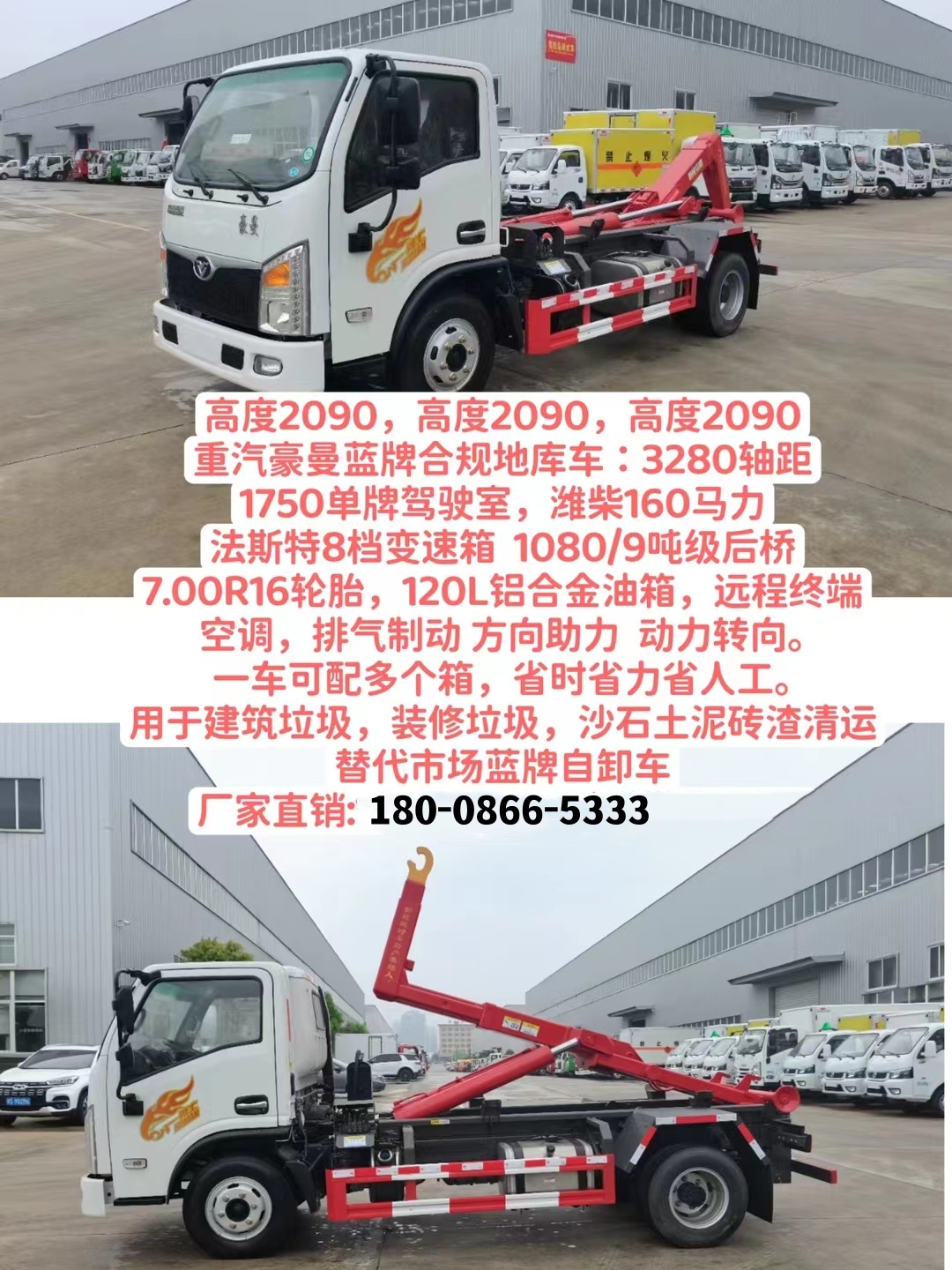 重汽豪曼藍(lán)牌勾臂垃圾車(chē)主體結(jié)構(gòu)采用高強(qiáng)方筒制作的伸縮臂,手電兩用閥帶無(wú)線(xiàn)遙控,雙液壓油缸舉升設(shè)計(jì)。拉臂帶有伸縮功能,一體化的聯(lián)動(dòng)鎖緊加上安全限位裝置,高強(qiáng)度精密鑄造件,副梁左右?guī)屑埽乐瓜潴w滑動(dòng)。液壓后支撐腿、鎖緊架、鎖緊油缸及多路換向閥等組成,使該垃圾車(chē)具有高效的垃圾清理能力。