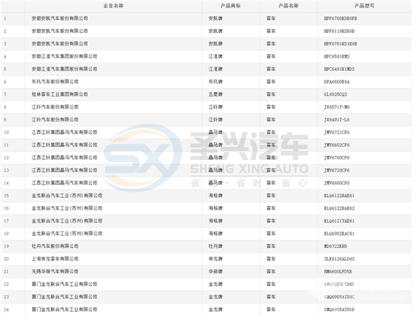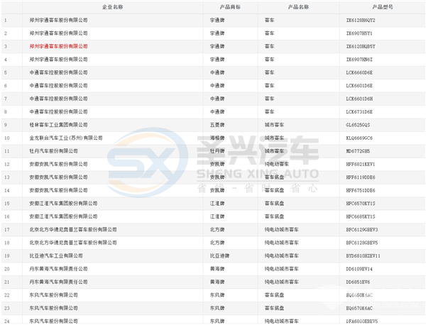 以下為:申報工業(yè)和信息化部《道路機動車輛生產(chǎn)企業(yè)及產(chǎn)品公告》(第319批)的車輛新產(chǎn)品公示(客車部分)