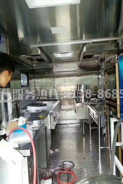 車內(nèi)采光通風車廂配有門,五道窗(其中有四道活動窗),一套吸油煙機。車停放時,可將全部門窗打開通風。車在行進中,可將抽排油煙機打開排氣,另外,頂換氣扇即可進氣又可排氣;車側(cè)面四道窗都為鋼化玻璃窗,可滿足白天的自然采光。另外車內(nèi)頂有兩盞頂燈,抽排油煙機上有照明燈,可滿足車內(nèi)操作照明。