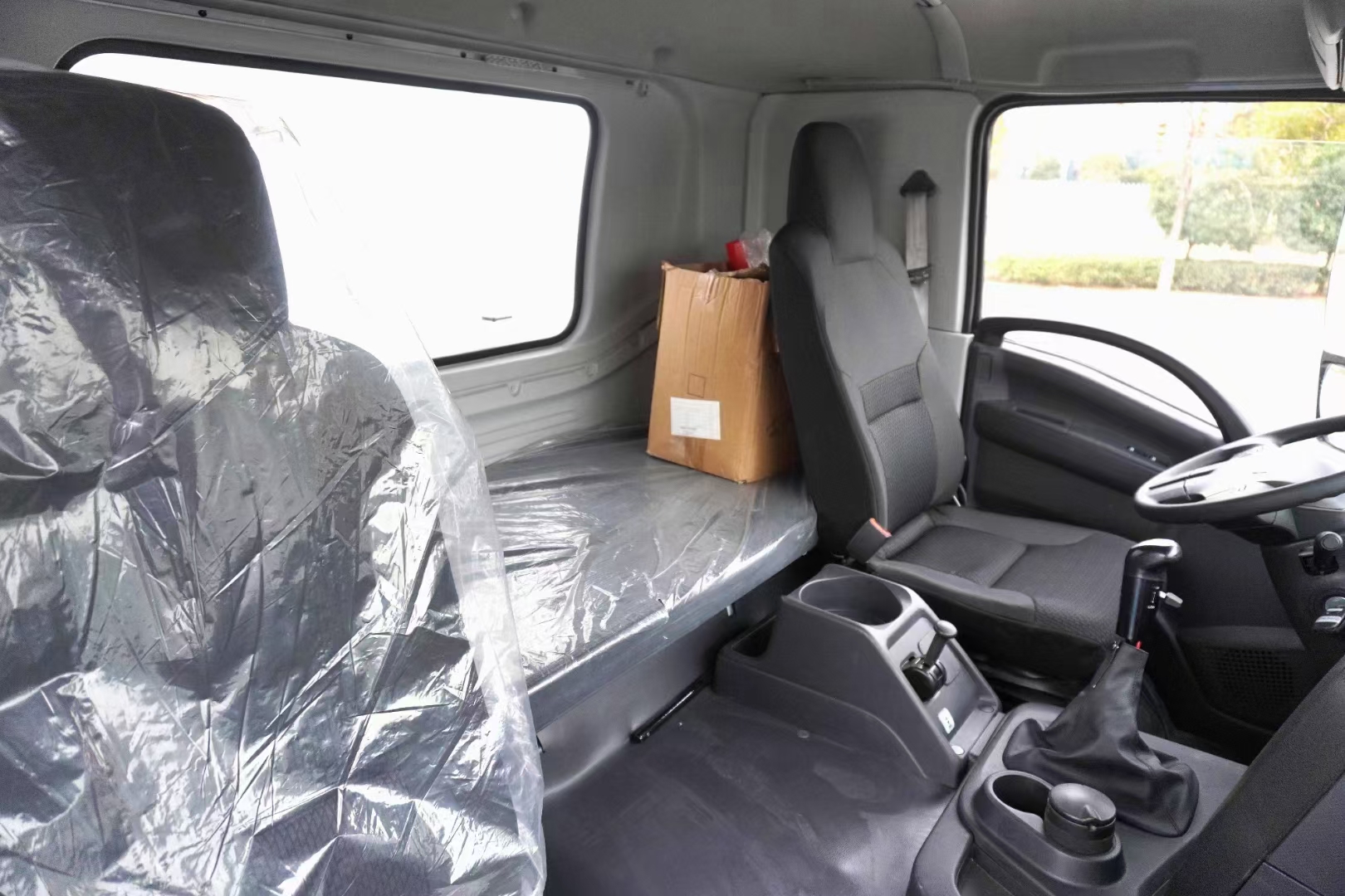 新款五十鈴巨咖5X駕駛室(排半2人)、氣懸駕駛室及氣懸座椅、冷暖空調、液壓方向助力、離合及剎車助力、定速巡航、多功能液晶儀表盤、電加熱后視鏡),五十鈴6HK1-TCG60發(fā)動機(國六B排放標準、馬力300HP、扭矩1000N.m 、排量7.79L),法士特9JS119TA 變速箱(具有直接檔和爬坡檔的9檔式、帶同步器、手動式),5100+1370mm軸距,輪胎295/80R22.5 18PR,車橋(前盤后鼓式剎車、后橋速比4.555),中后橋帶中央差速鎖,斷氣剎、ABS、排氣制動,鋁合金400升油箱.