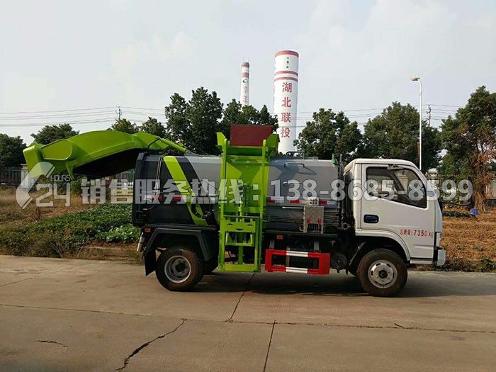 3、餐廚垃圾裝載由垃圾桶提升系統(tǒng)完成,該系統(tǒng)具有垃圾桶鎖止結(jié)構(gòu),裝卸安全可靠。垃圾桶與垃圾投入口銜接好,保證裝卸過(guò)程中餐廚垃圾不溢撒、不遺漏。