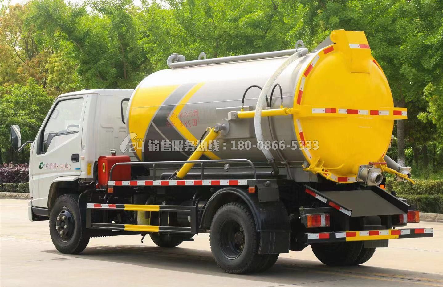 江鈴順達吸污車罐體形狀為圓柱形,采用武鋼6mm厚優(yōu)質(zhì)碳鋼鋼板,罐體前部帶吸污窗,洗手裝置,舉升裝置,吸污管5米一根,罐體多種顏色選擇,其余按廠內(nèi)標準配置制作。隨車配置大功率真空吸污泵和優(yōu)質(zhì)液壓系統(tǒng),罐體封頭一次壓鑄成型、罐體可后開、雙頂自卸。罐內(nèi)污物可通過后蓋直接傾倒,具有真空度高(比吸糞車的吸力更大)、噸位大、效率高、用途更廣泛的特點。(垂直吸程:≥8 m,工作壓力:8500Pa,理論抽速:120L/S,軸功功率:≤13kw,進排氣口徑:50mm,抽滿罐時間:<5 min,排滿罐時間:<4min。吸污車采用大功率真空泵,一次壓鑄成型的封頭-,加厚的抗壓罐體,雙頂液壓系統(tǒng),是比吸糞車功能更強大的車型。
