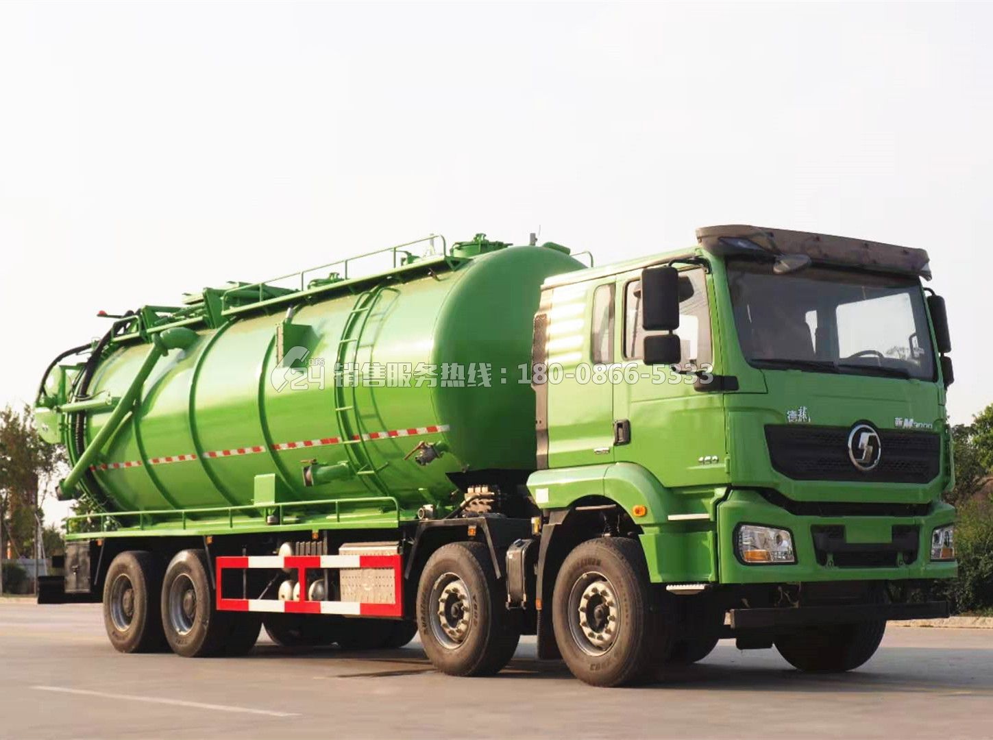 吸污部分:吸污罐采用8mm武鋼碳鋼制作,容積23-26方,帶視污窗,安裝有防溢閥,山東SK-42水循環(huán)泵帶濰柴420馬力柴油機(jī)(副發(fā)可選裝),帶8米吸污橡膠管,罐體后部600液壓排污口,150排污口一個,100內(nèi)抽一個,平臺滿鋪,加大卷盤。罐體帶隔襯板,防止吸污罐體變形。