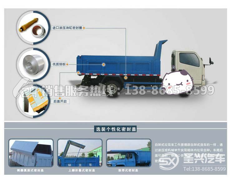 東風多利卡密封式自卸垃圾車(選裝翼展蓋)