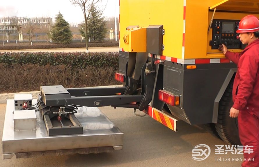 6、帶有專用LED施工照明燈,滿足在交通流量大的路段夜間施工的需要;配有LED安全警示燈,有效視距達(dá)到200米以上;方便夜間施工時(shí)可有效提醒來車注意避讓。