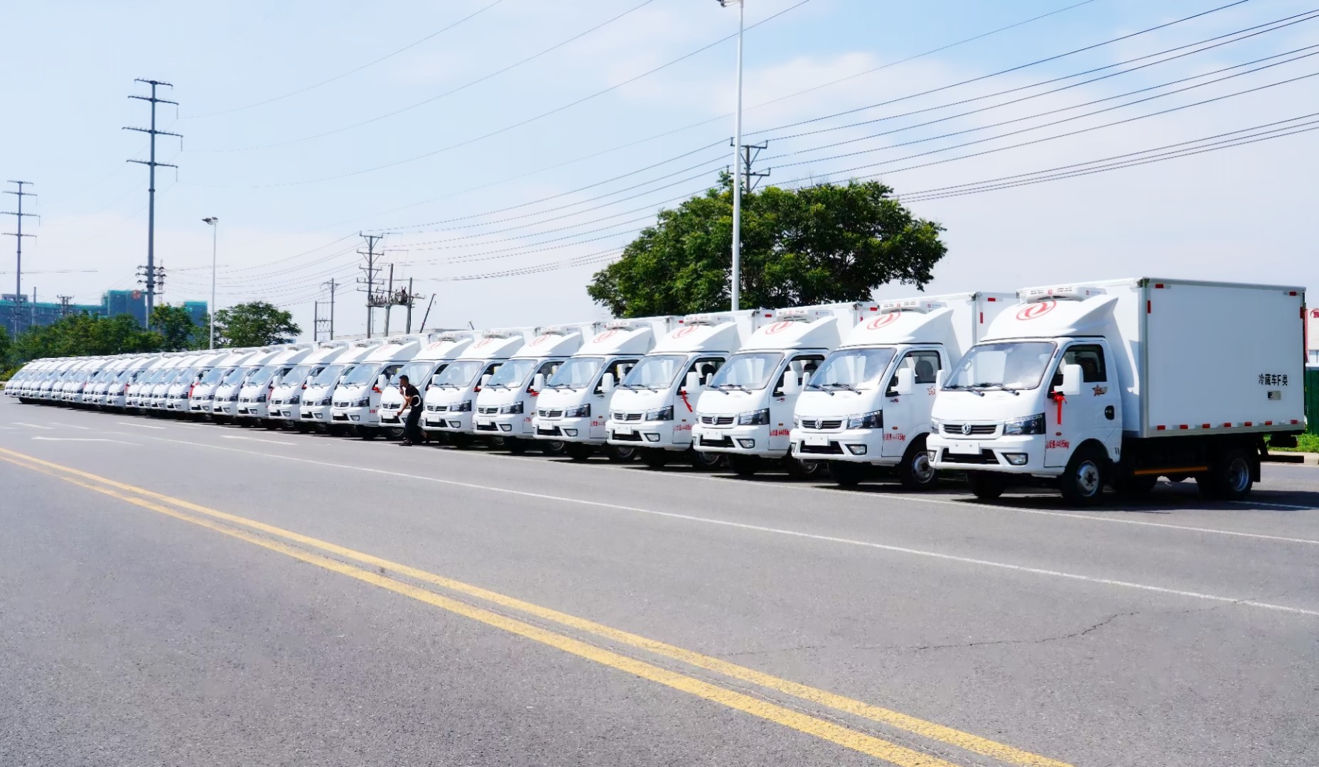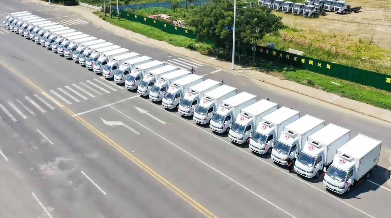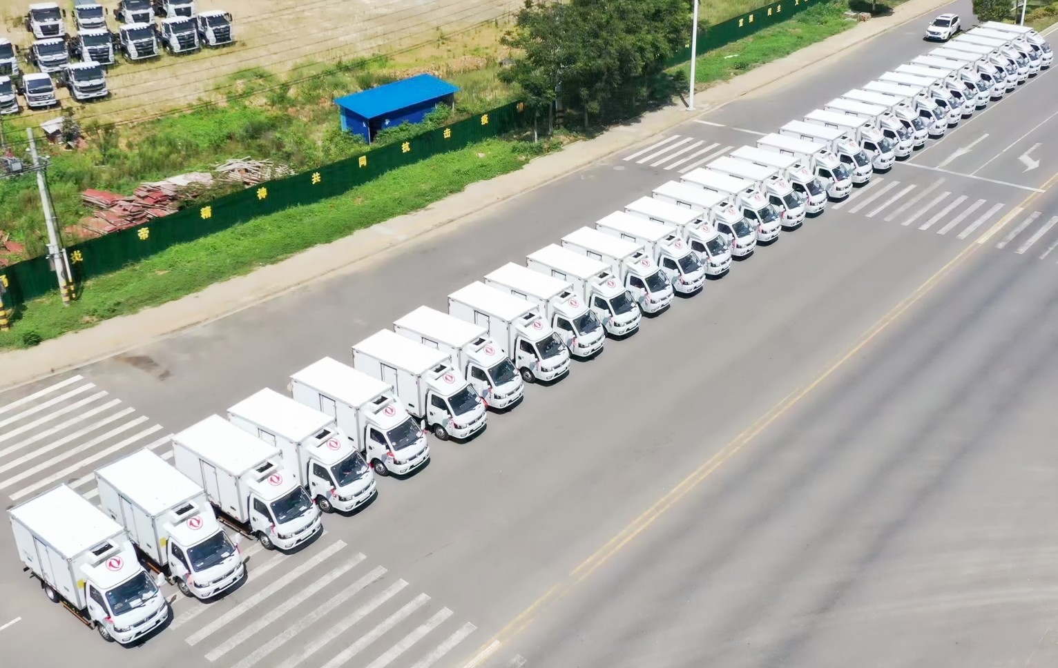 東風途逸國六柴油冷藏車32臺定單完工發(fā)往廣東省
