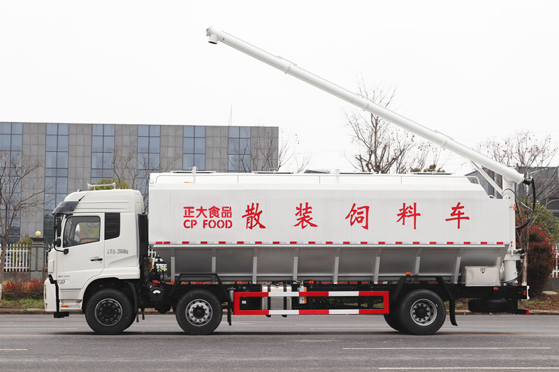 • 散裝飼料運(yùn)輸車主要用于從飼料廠向畜牧場養(yǎng)禽場及飼料加工用戶運(yùn)輸散裝飼料成品或飼料生產(chǎn)原糧,同時它也可用來運(yùn)輸某些無腐蝕性粉粒狀原料,如制藥廠粉料和糧庫周轉(zhuǎn)。東風(fēng)暢行D3V前四后四飼料車:此車自重輕 裝載多 軸距短 易轉(zhuǎn)彎 特別適合云貴川這樣的路況 此車進(jìn)山區(qū)爬坡動力足,裝的多,短軸距易操作,打料快