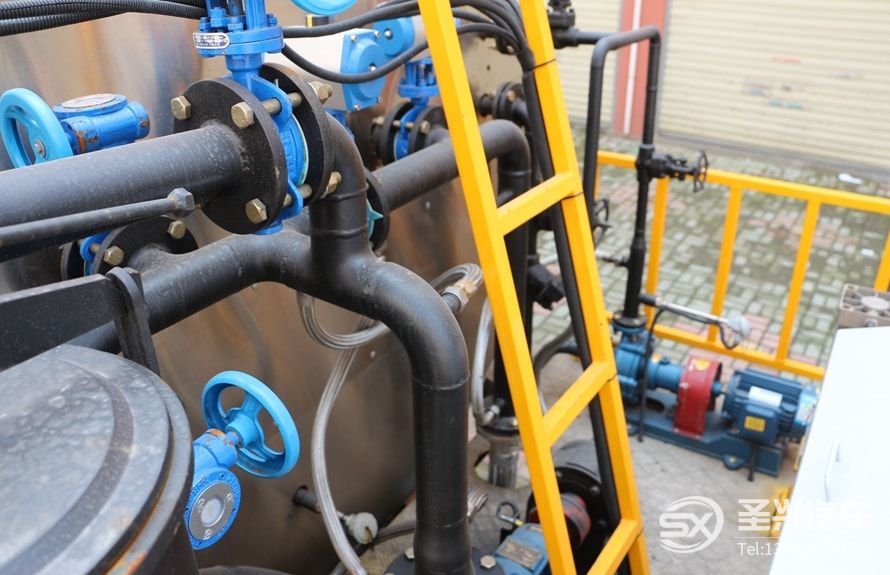 瀝青灑布車好不好用,首先看取力器。上圖是 重汽斯太爾12噸瀝青灑布車取力器圖片,此車配備全功率取力器,它的好處在于,只要發(fā)動機不熄火,灑布就不會停止。而一般用變速箱取力的車型,由于愛離合器的限制,當(dāng)駕駛員腳踩離合器后,變速箱停止工作,也就意味著灑布工作要停止。所以全功率取力器相對變速箱取力灑布更均勻,工作效率更高。